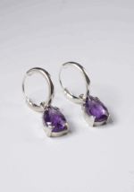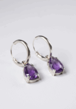 Aros argolla elaborados en plata 925 con piedra Amatista facetada en forma de gota.