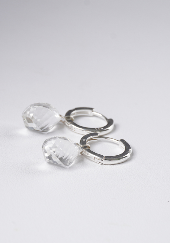 Aros argolla elaborados en plata 925 con piedra cristal de roca.