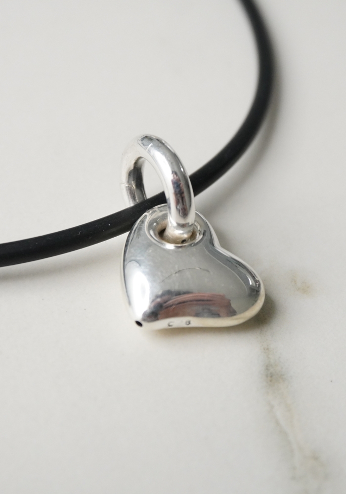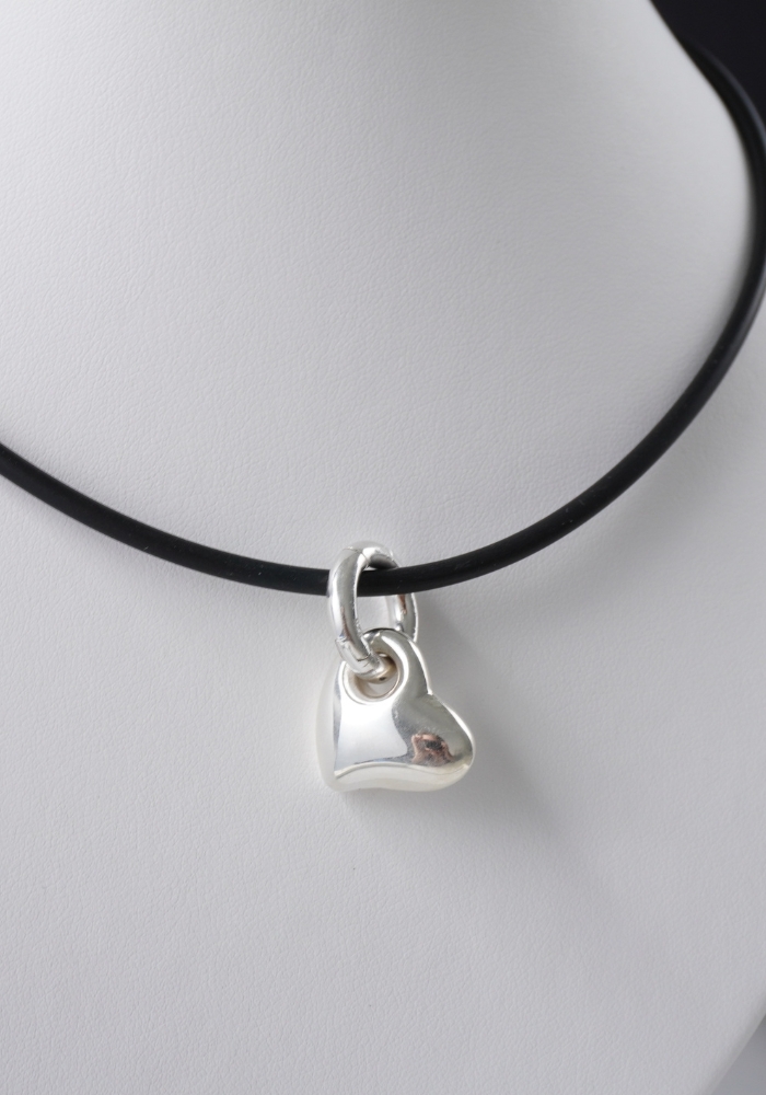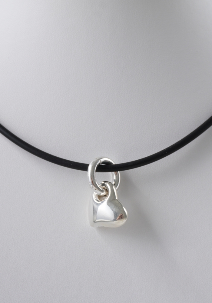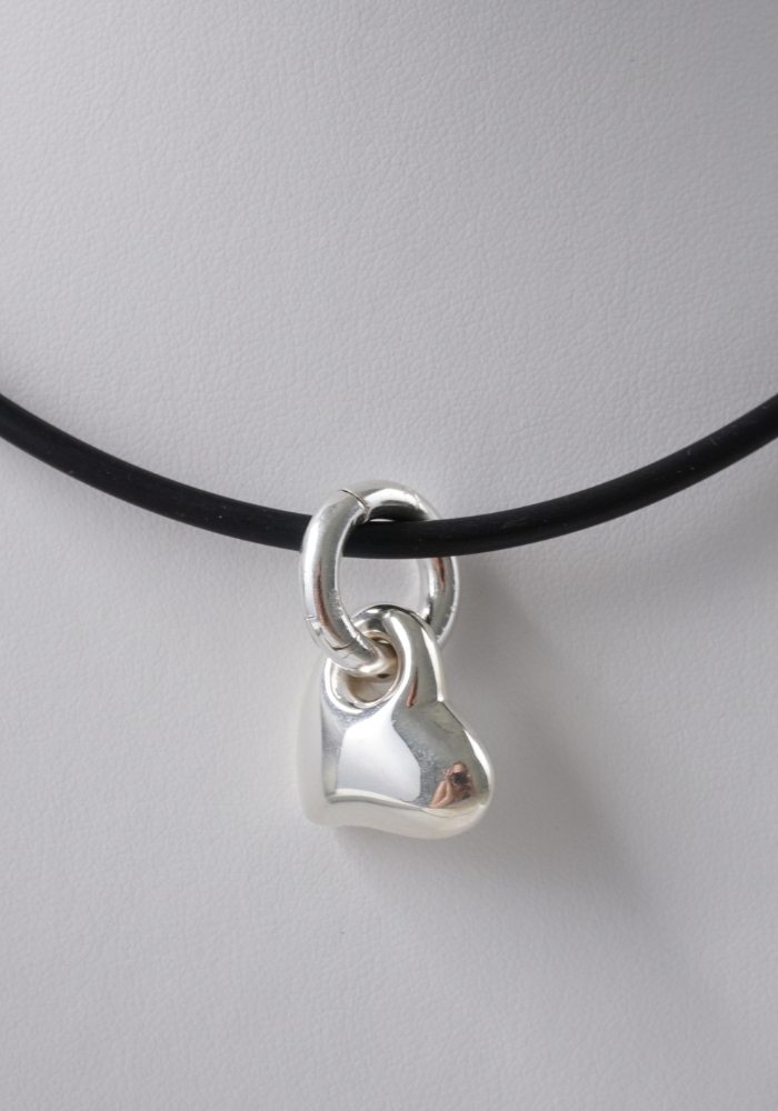 Collar de caucho con dije de corazón y clip Verona, en plata 925.