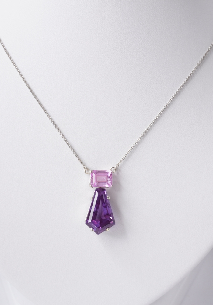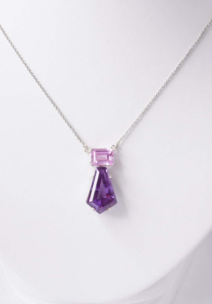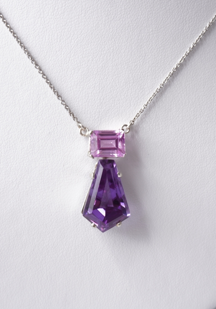 Colgante de plata 925 en combinación con dos piedras, amatista y rosa de Francia.