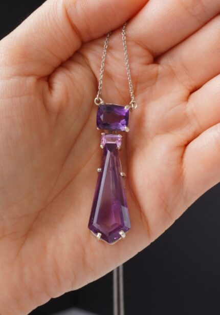 Colgante de plata 925 con piedra engarzada rosa de Francia.