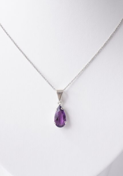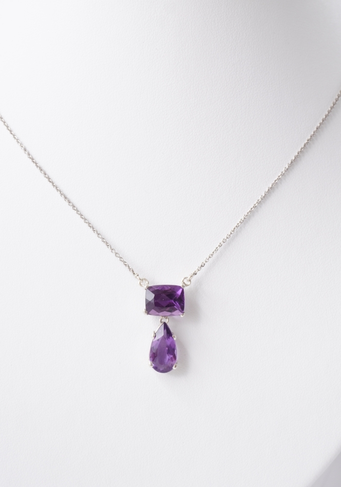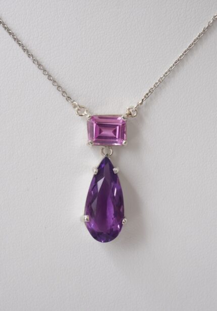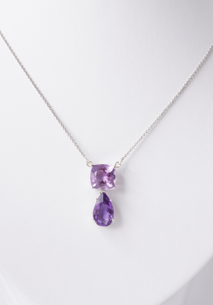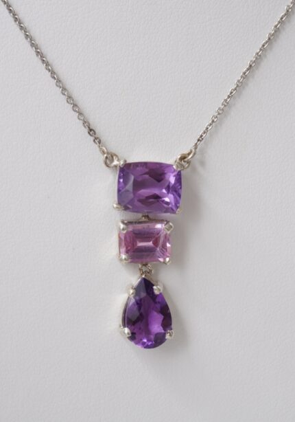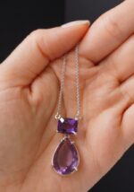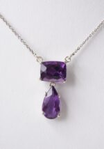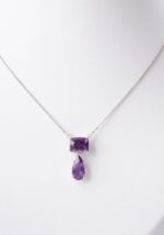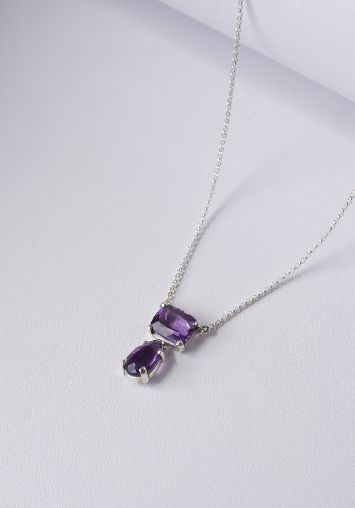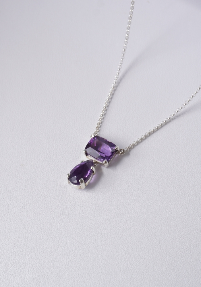 Colgante de plata 925 en combinación con dos piedras amatistas de diferente tamaño.