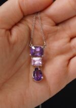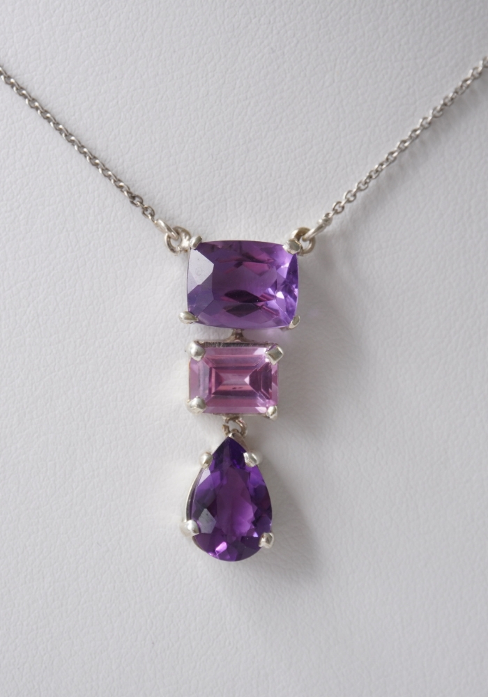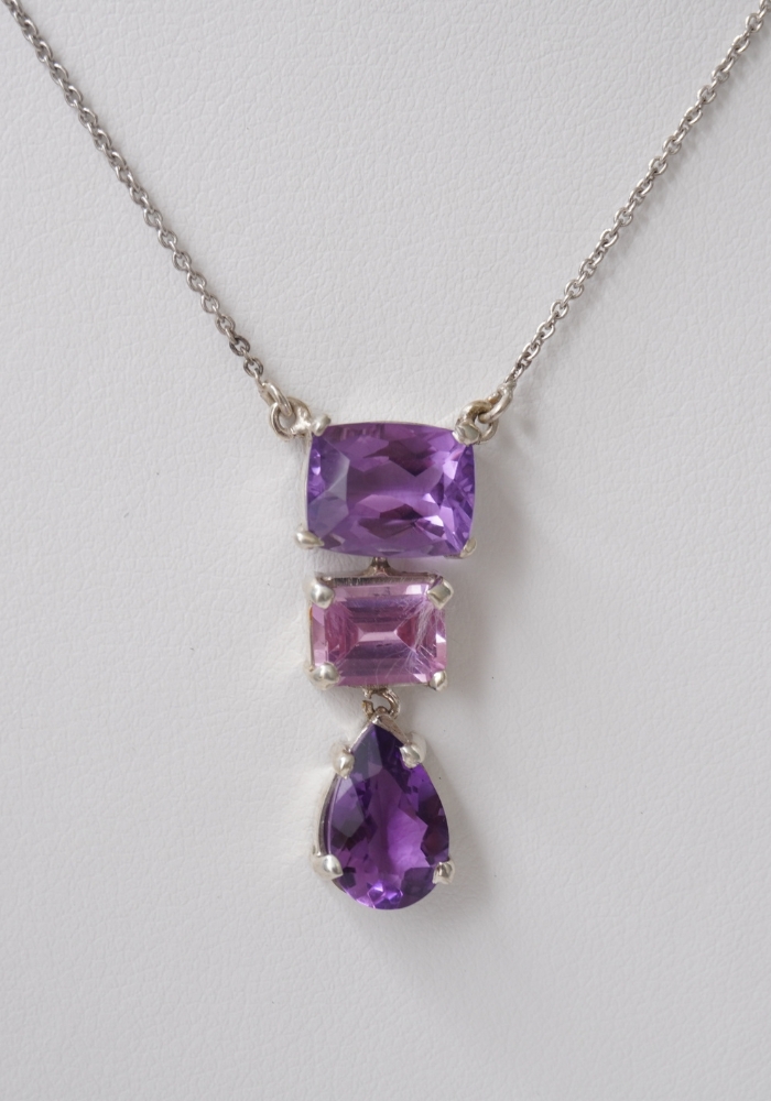 Colgante de plata 925 en combinación con tres piedras, Amatista y Rosa de Francia.