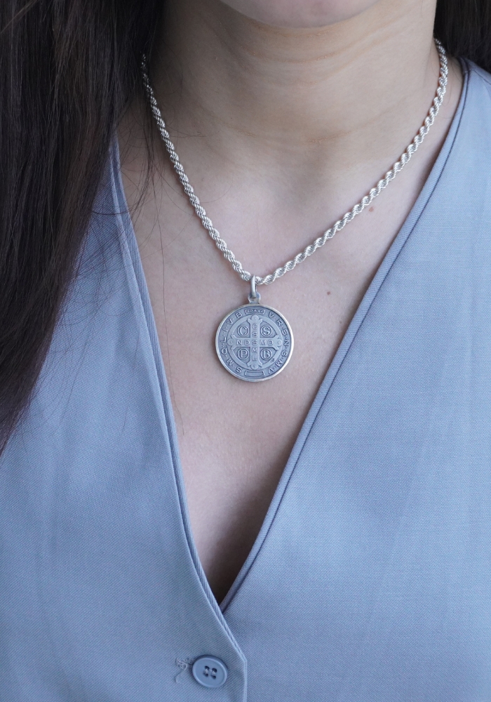 Medalla San Benito en plata 925.
