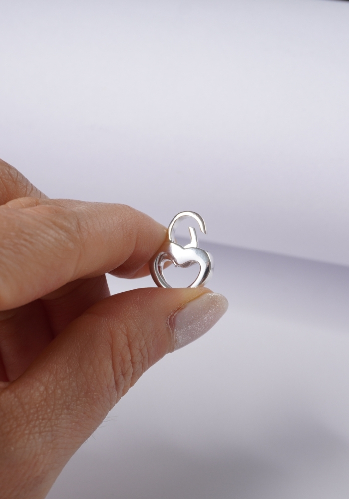 Clip con forma de corazón con sistema para abrir y cerrar en un clic, de plata 925.